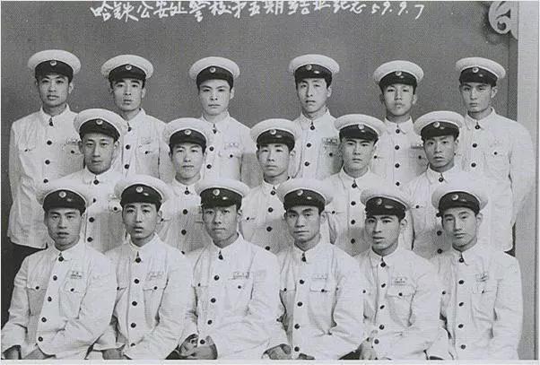 1959年9月,哈爾濱鐵路公安處警校學(xué)員合影留念,身著58式制服。